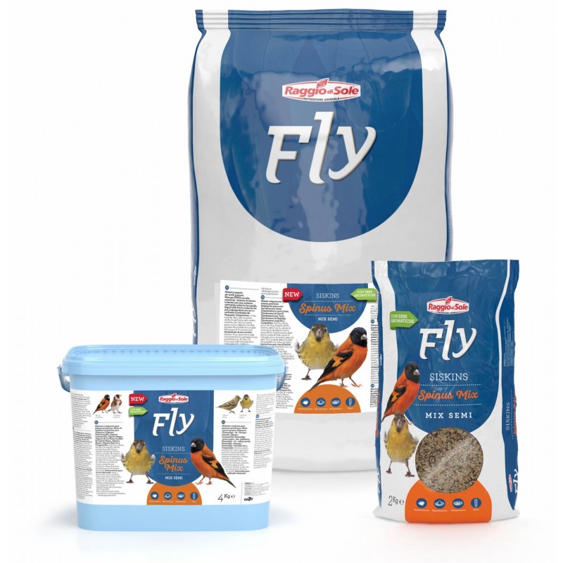 Spinus Mix z linii Fly Extra Fly firmy Raggio di Sole to mieszanka nasion wzbogacona aromatycznymi ziołami - czyżyk